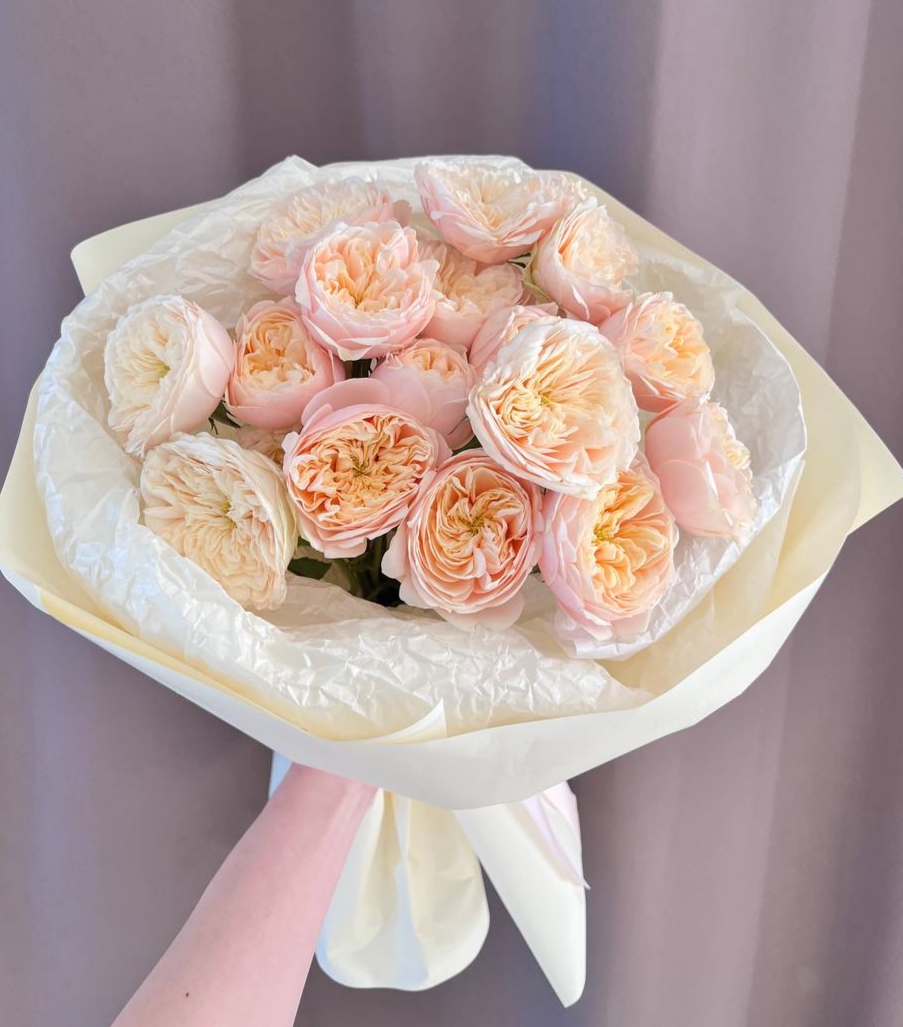 Букет из 7 пионовидных кустовых роз, сорт Darlington