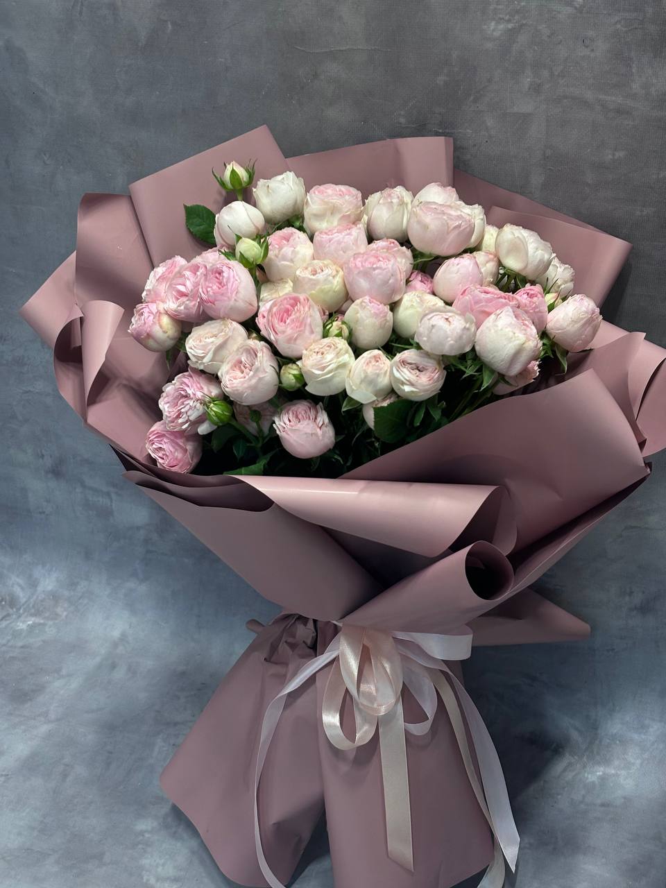 Букет из кустовых пионовидных роз, сорт МендсфилдПарк, 15 шт