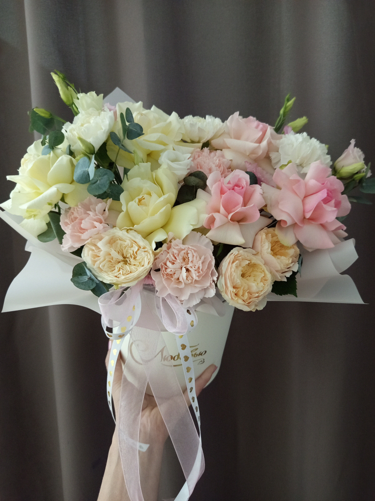 Композиция "Нежность роз и эустомы"