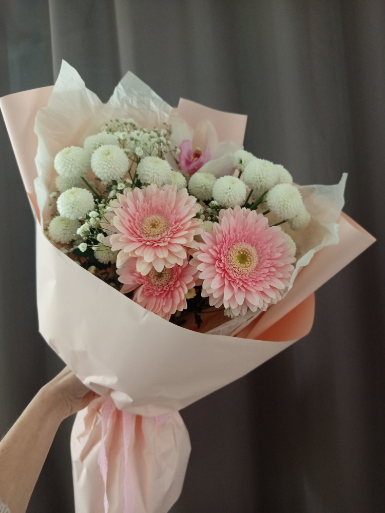 Нежность гербер и орхидеи